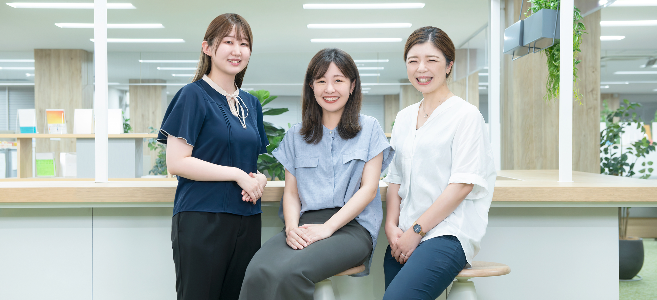 お客さま一人ひとりと向き合う私たちだからこそ、誰もが働きやすいと感じる環境づくりをとても大事にしています。お客さまのために、仕事と丁寧に向き合い学び、成長する社員たちにそれぞれの視点で働き方について語り合ってもらいました。